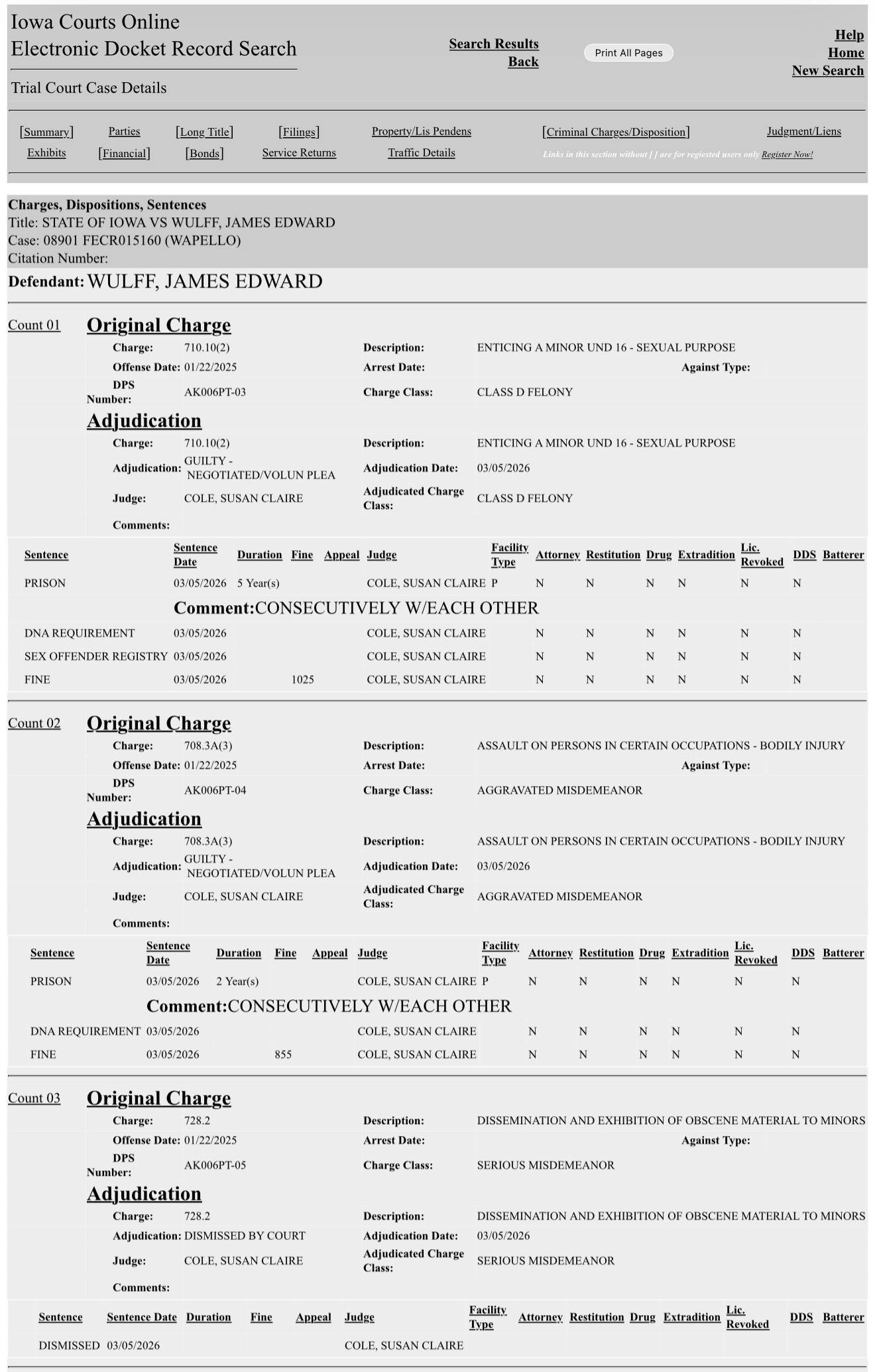 James Wulff of Ottumwa Iowa has been SENTENCED. He will serve 7 years and be on the registry. This catch was decoyed by Niky Sal.