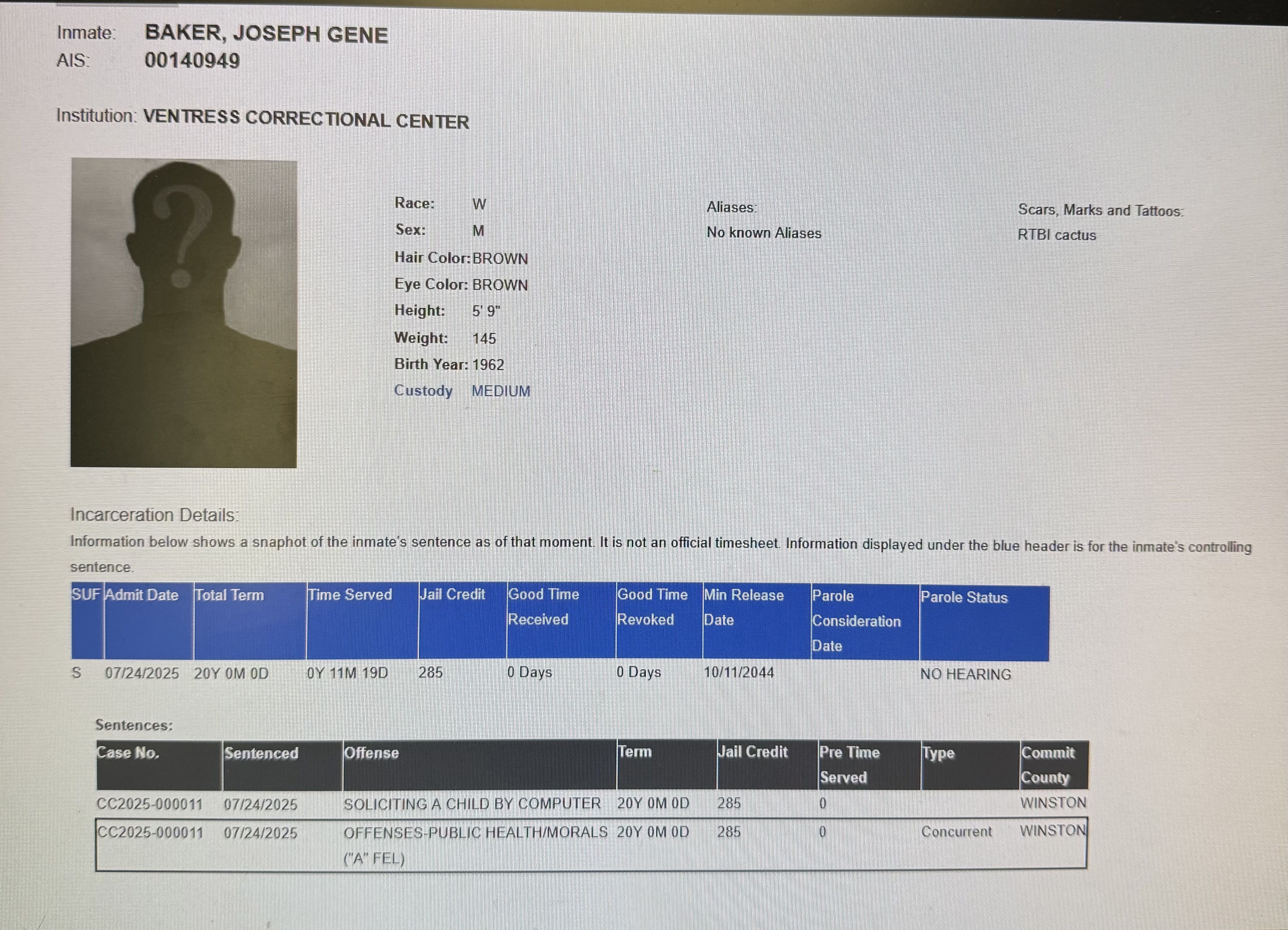 Joseph Baker of Haleyville, Alabama has been SENTENCED! he will be serving 20 years in the Alabama DOC.