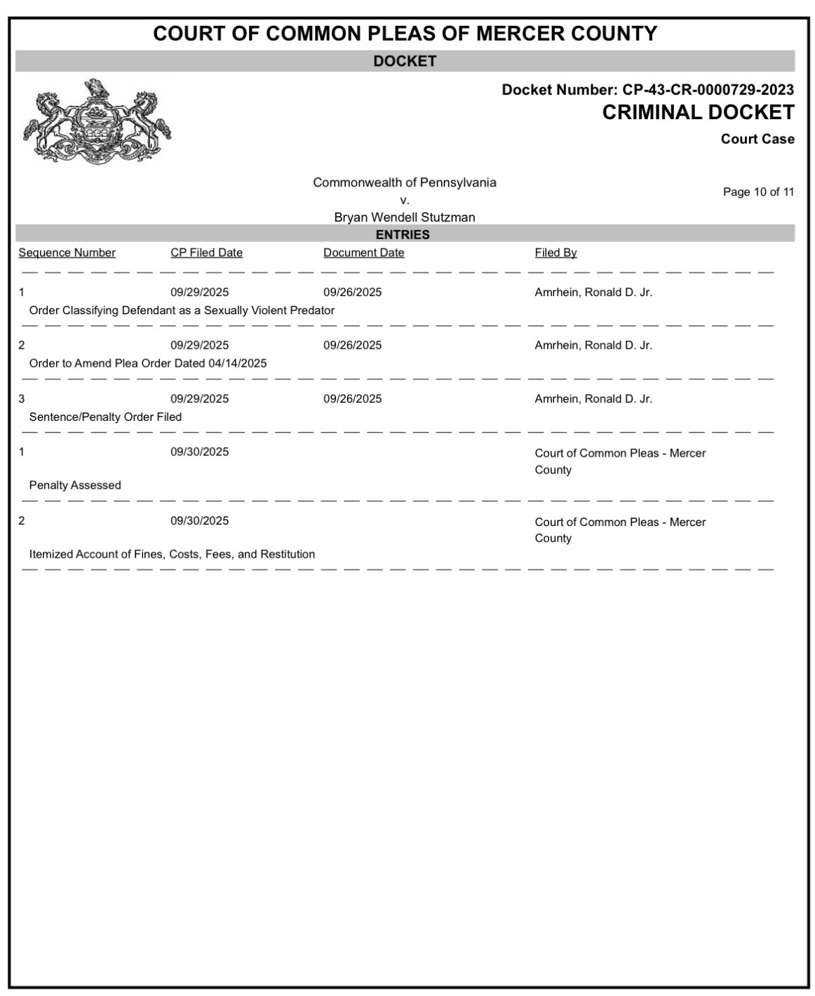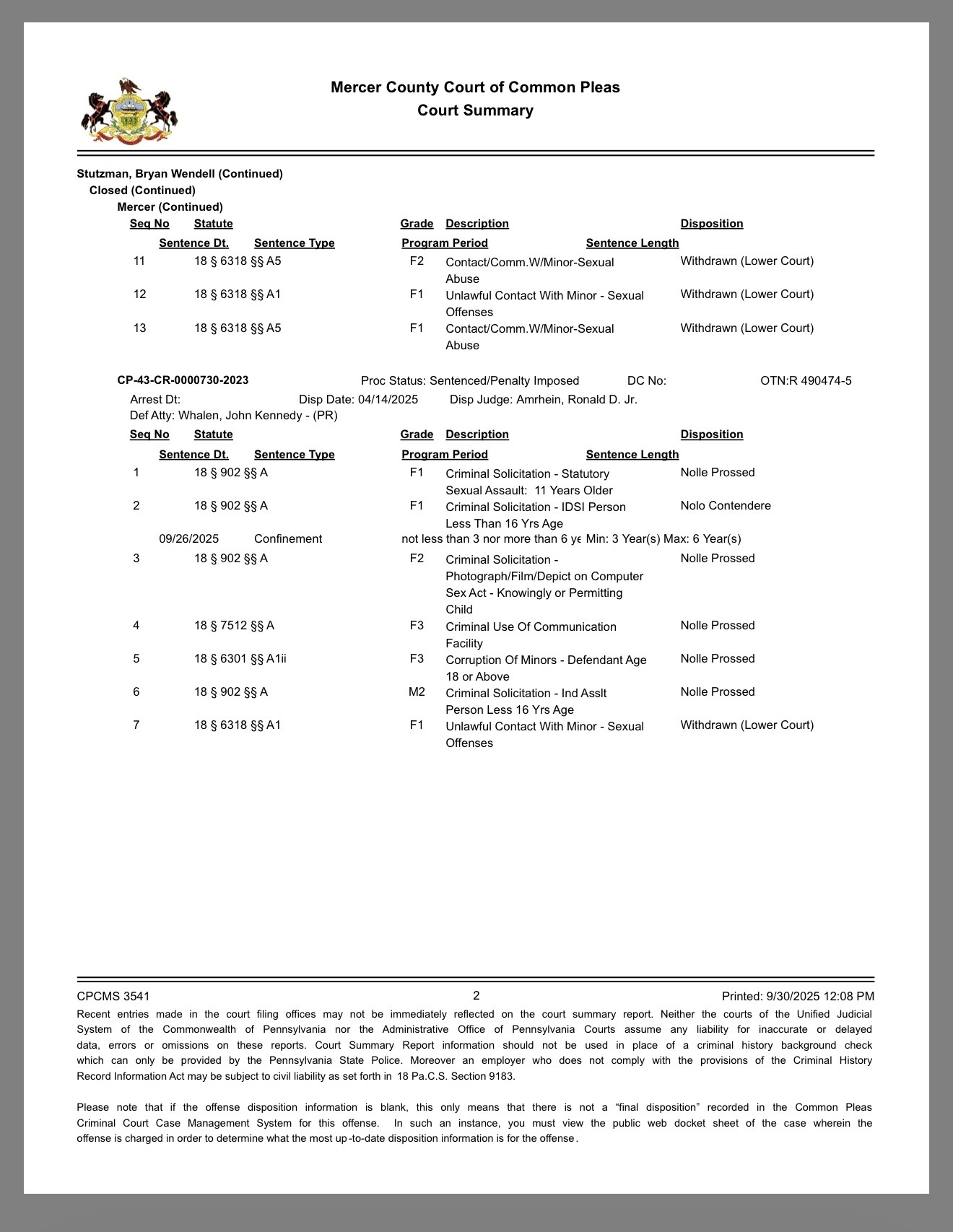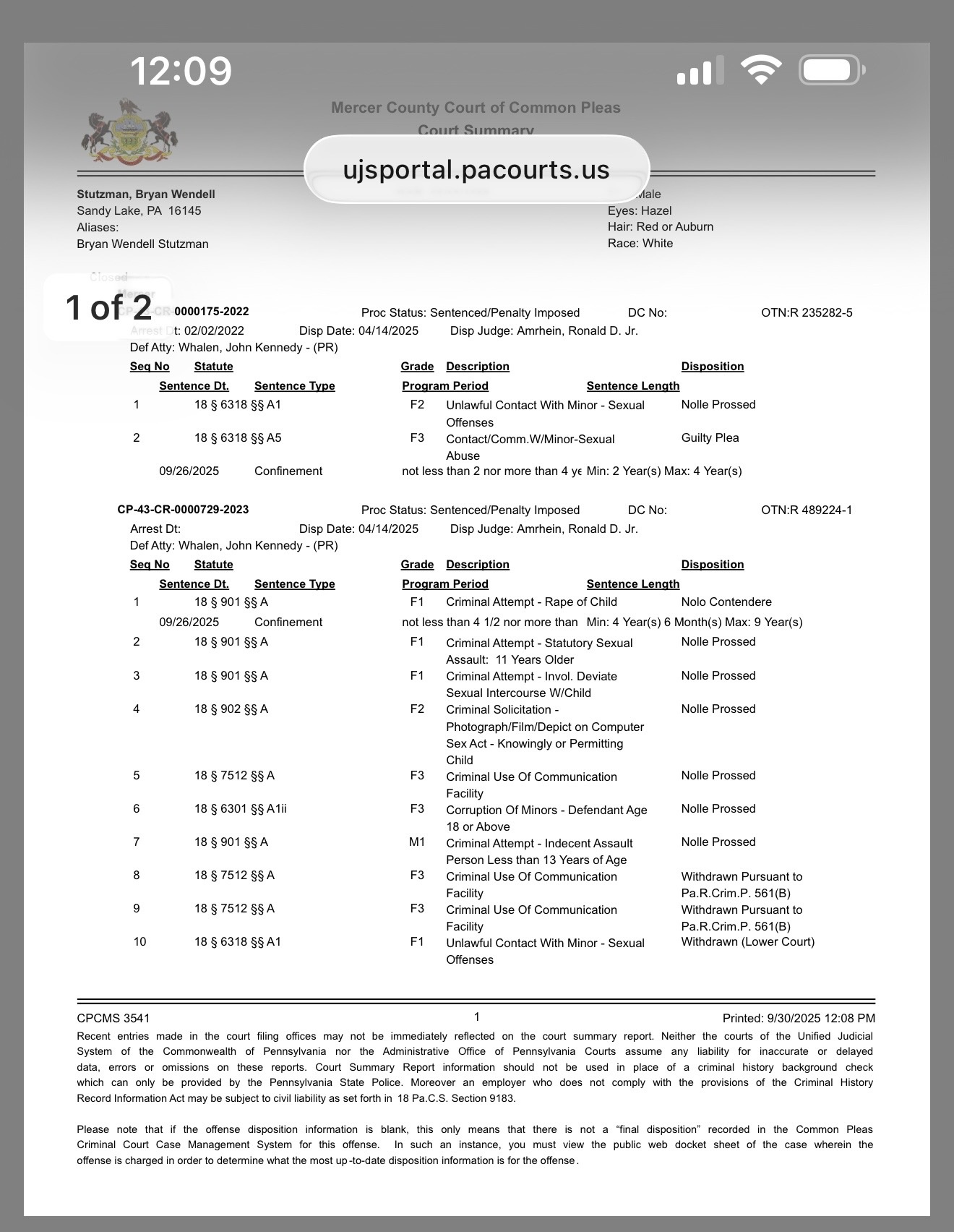 Bryan of Sandy Lake, PA has been SENTENCED!
