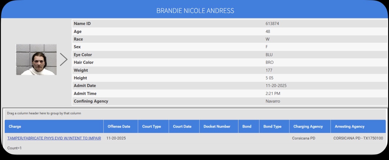We just received information that James Andress’s wife was arrested for supposedly throwing his phone that had CP on it out of the car window.