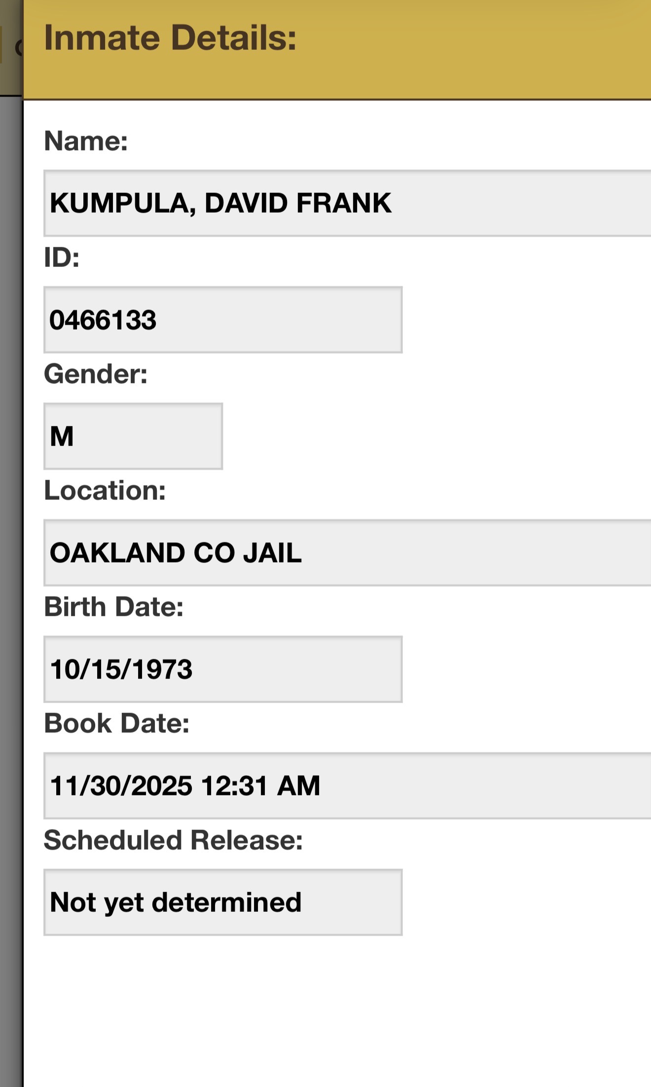 David of Waterford, MI was arrested! We don’t have his charges yet but will update when we get them!