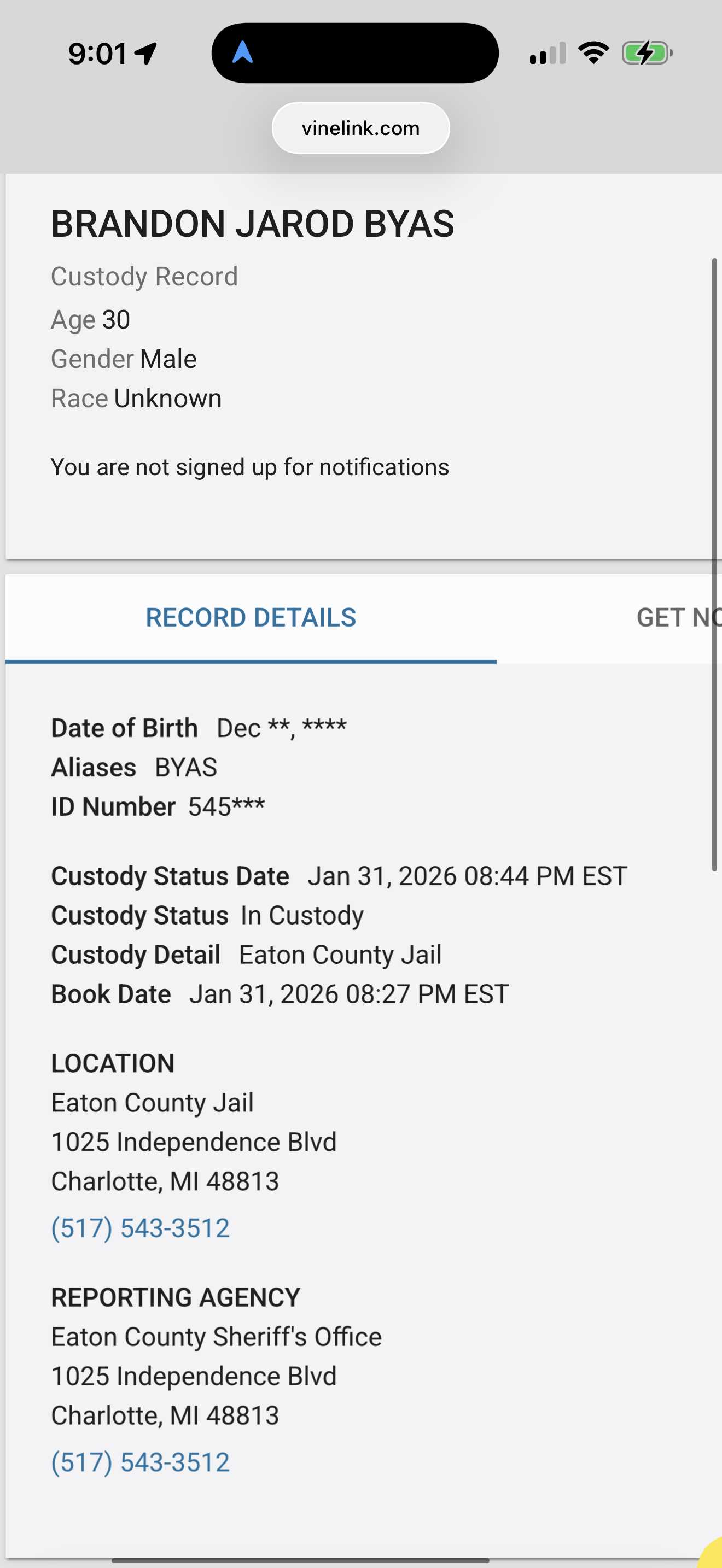 Brandon Byas of Lansing, Michigan, which was tonight’s collab with Predator Poachers has been arrested!