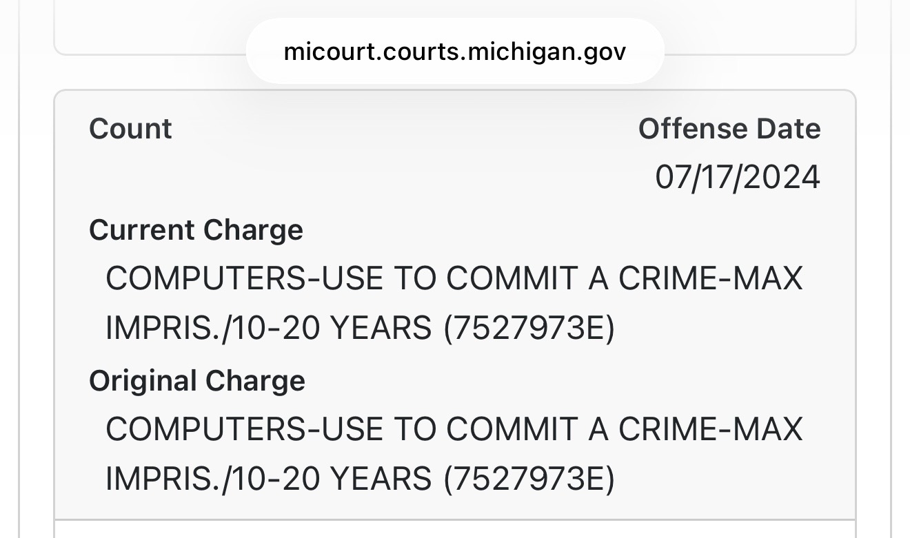 Richard Johnston of Lansing, Michigan has finally been arrested and charged a year and a half after his catch.