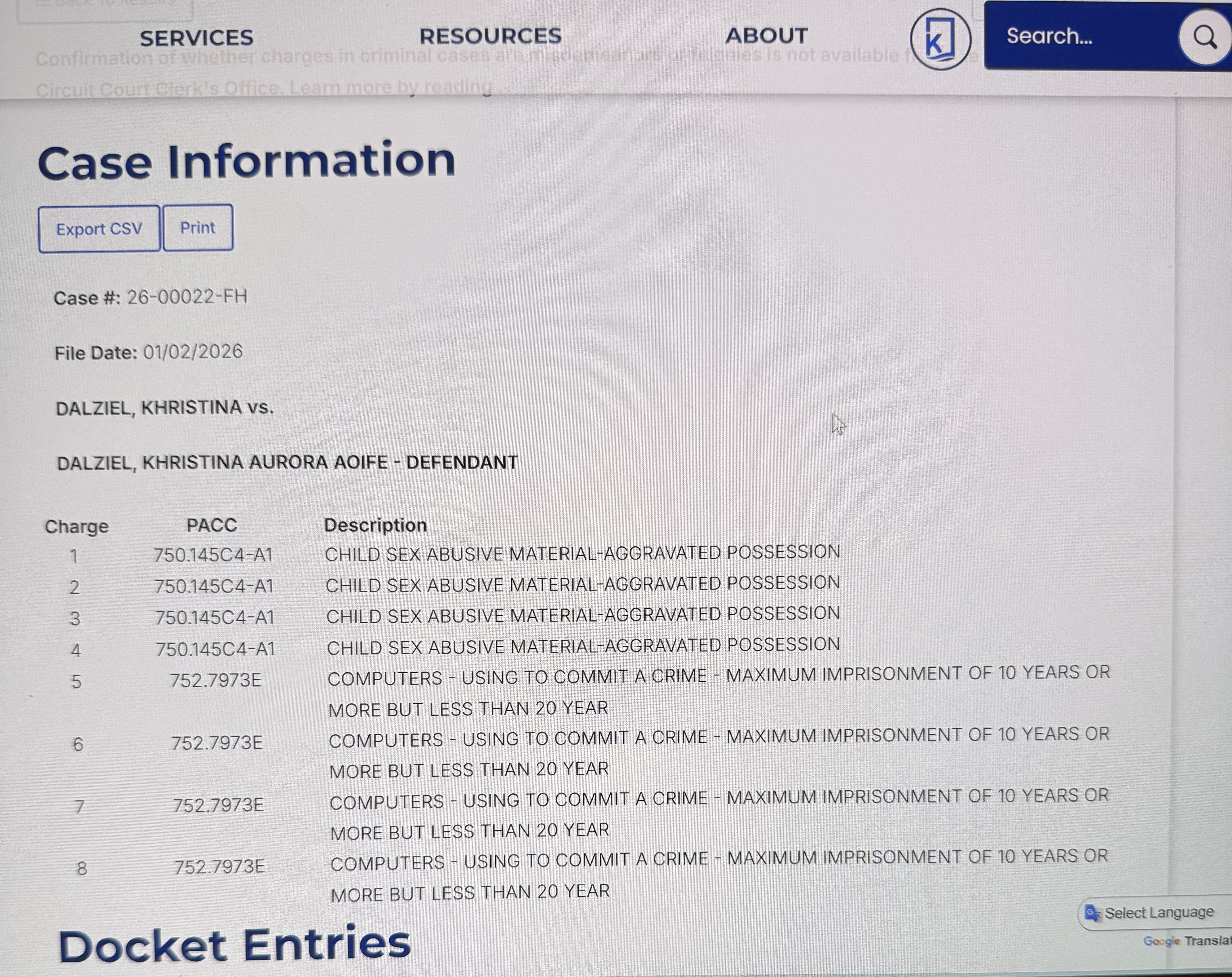 Khristina Dalziel of Grand Rapids, Michigan was arrested back in December with 2 charges. In January an additional 8 charges were filed!