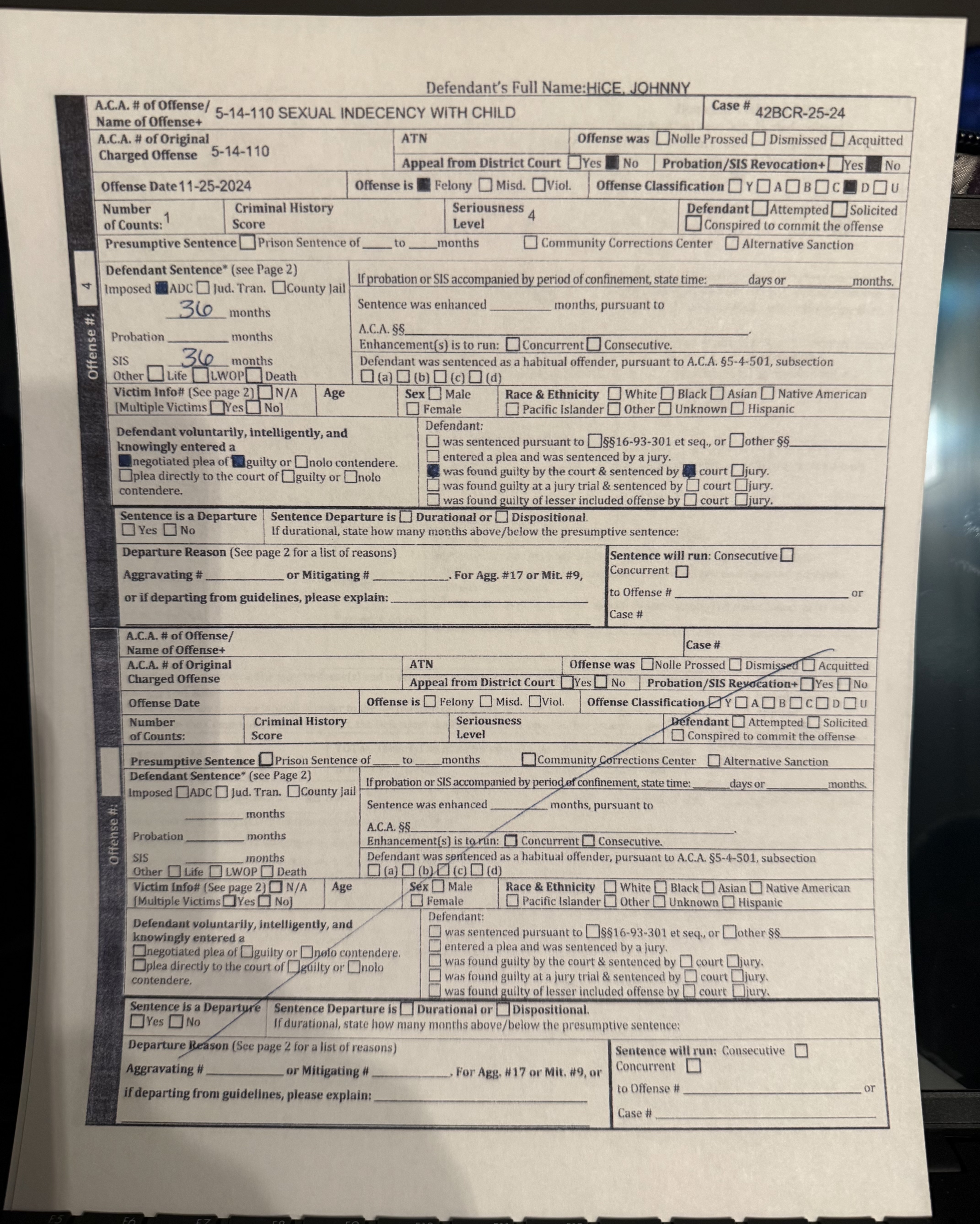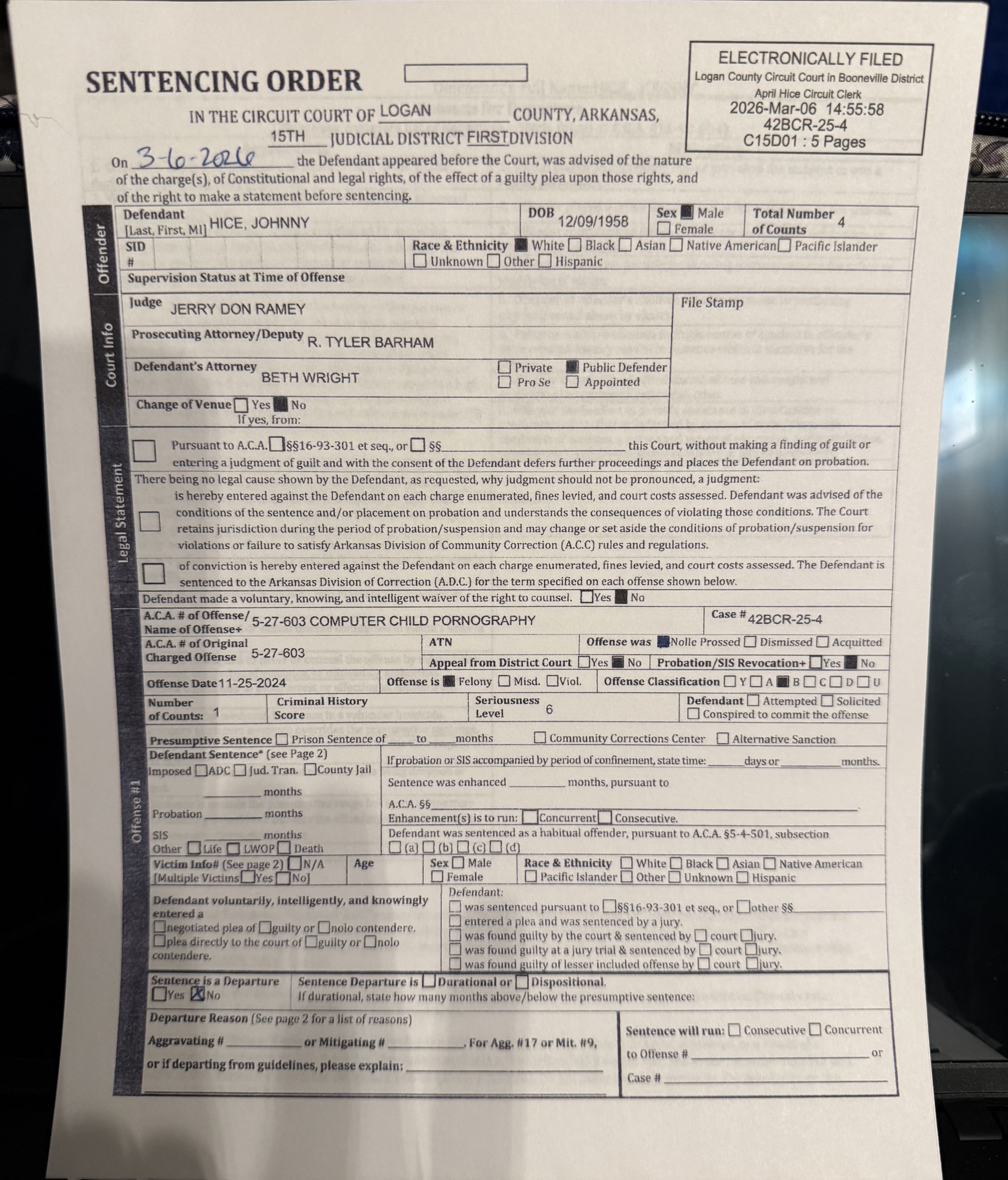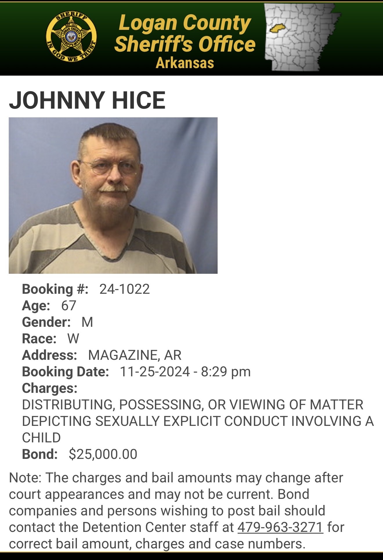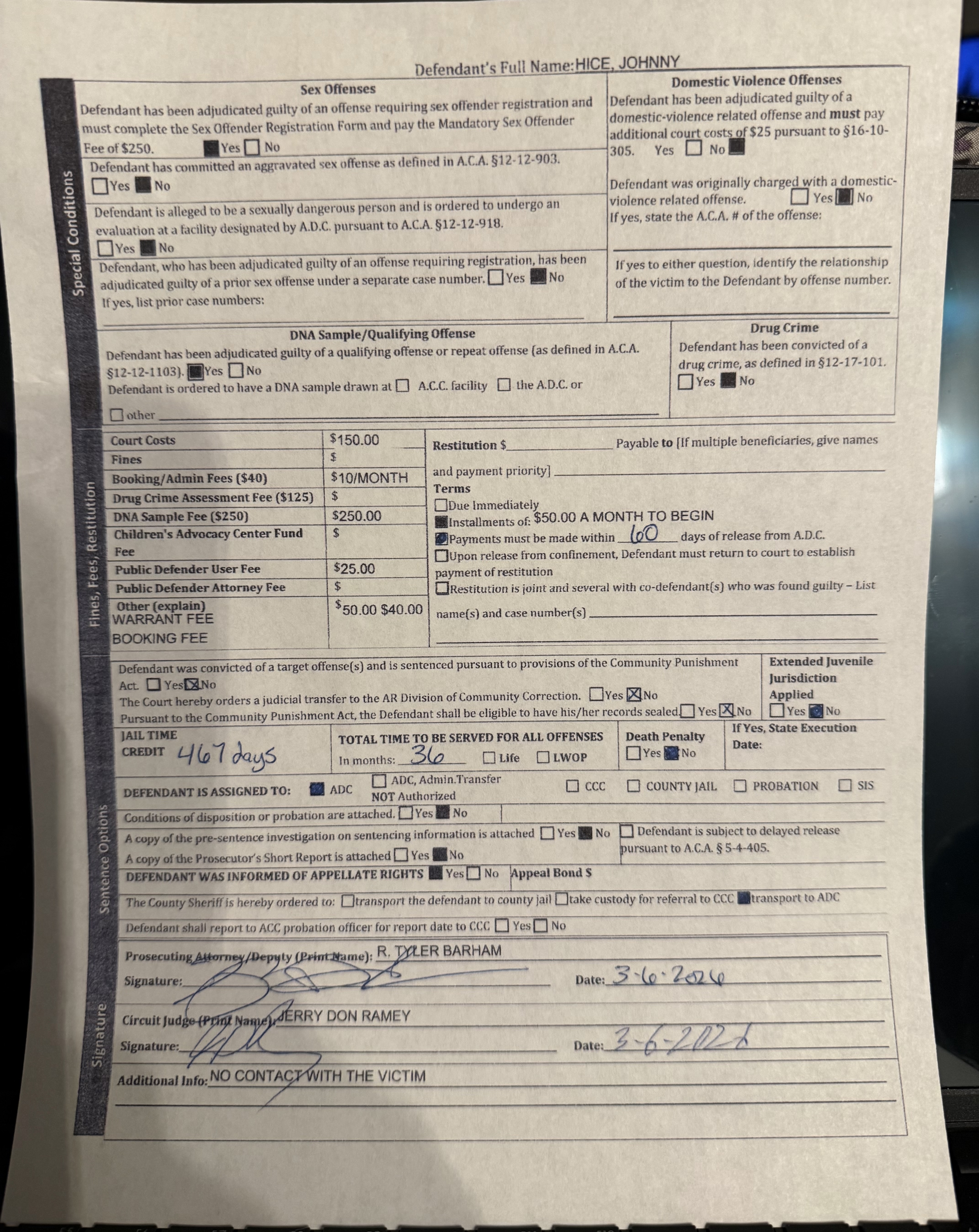 Jonny Hice of Magazine Arkansas has been SENTENCED! He was sentenced to a total of 10 years, he will serve 3 years with 467 days credit and 7 years were suspended.