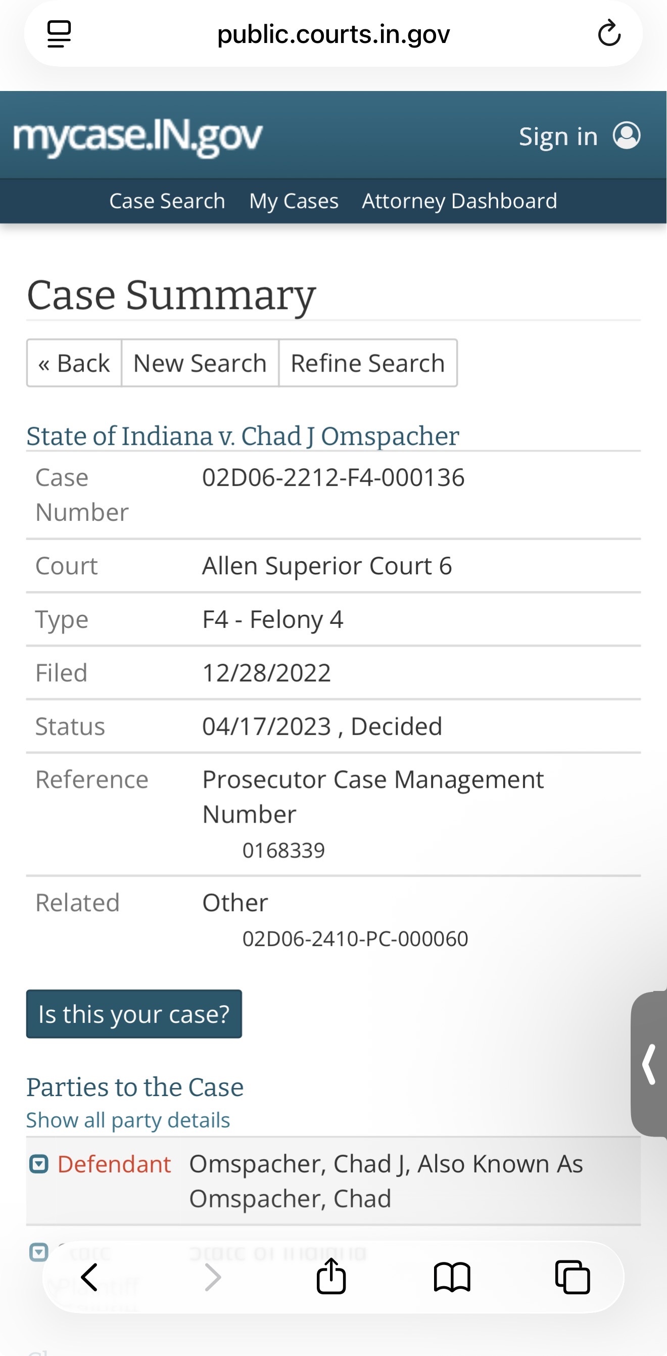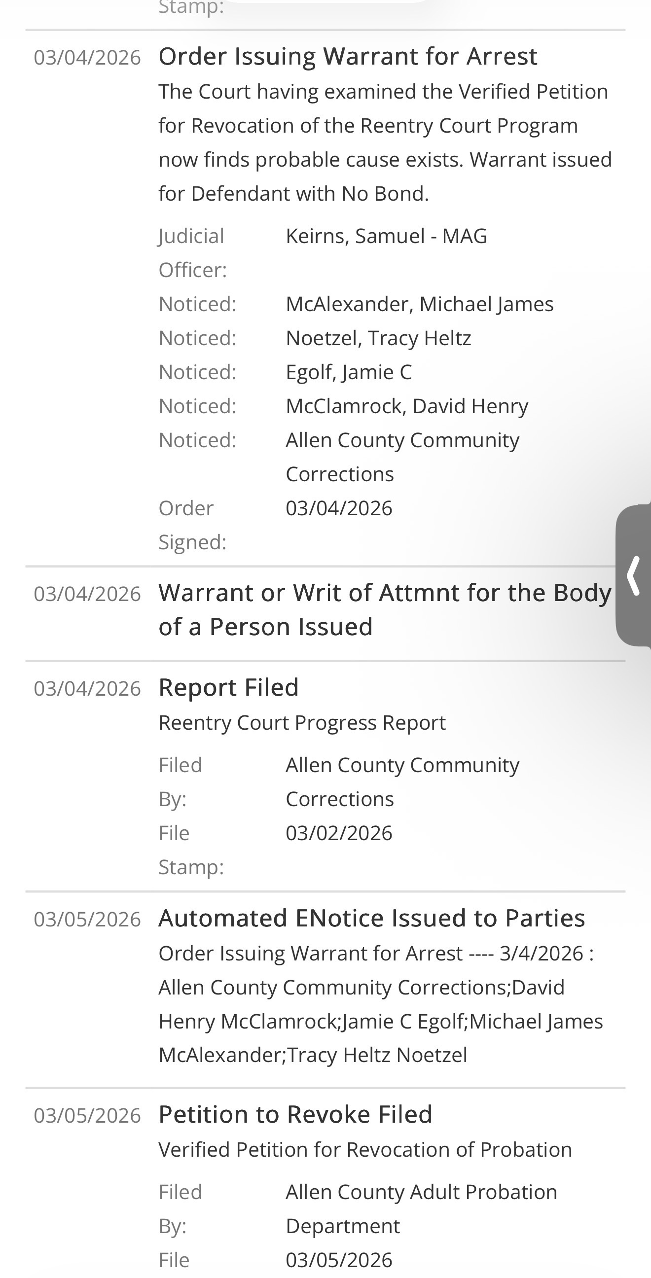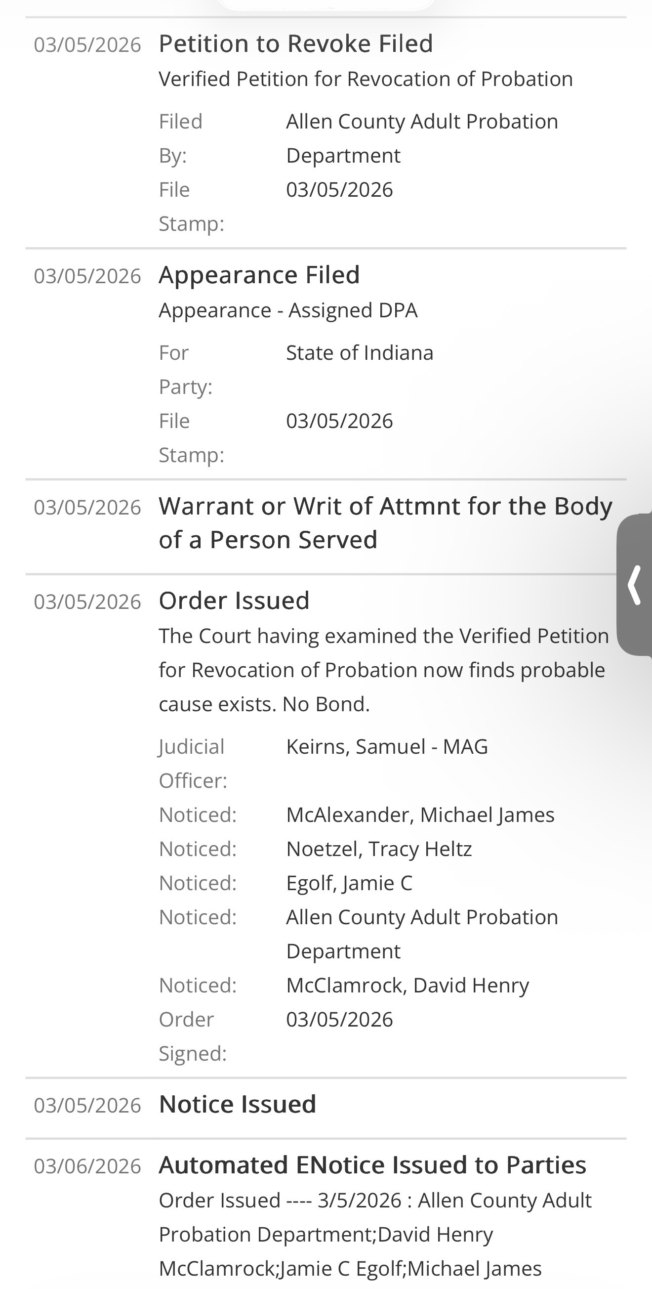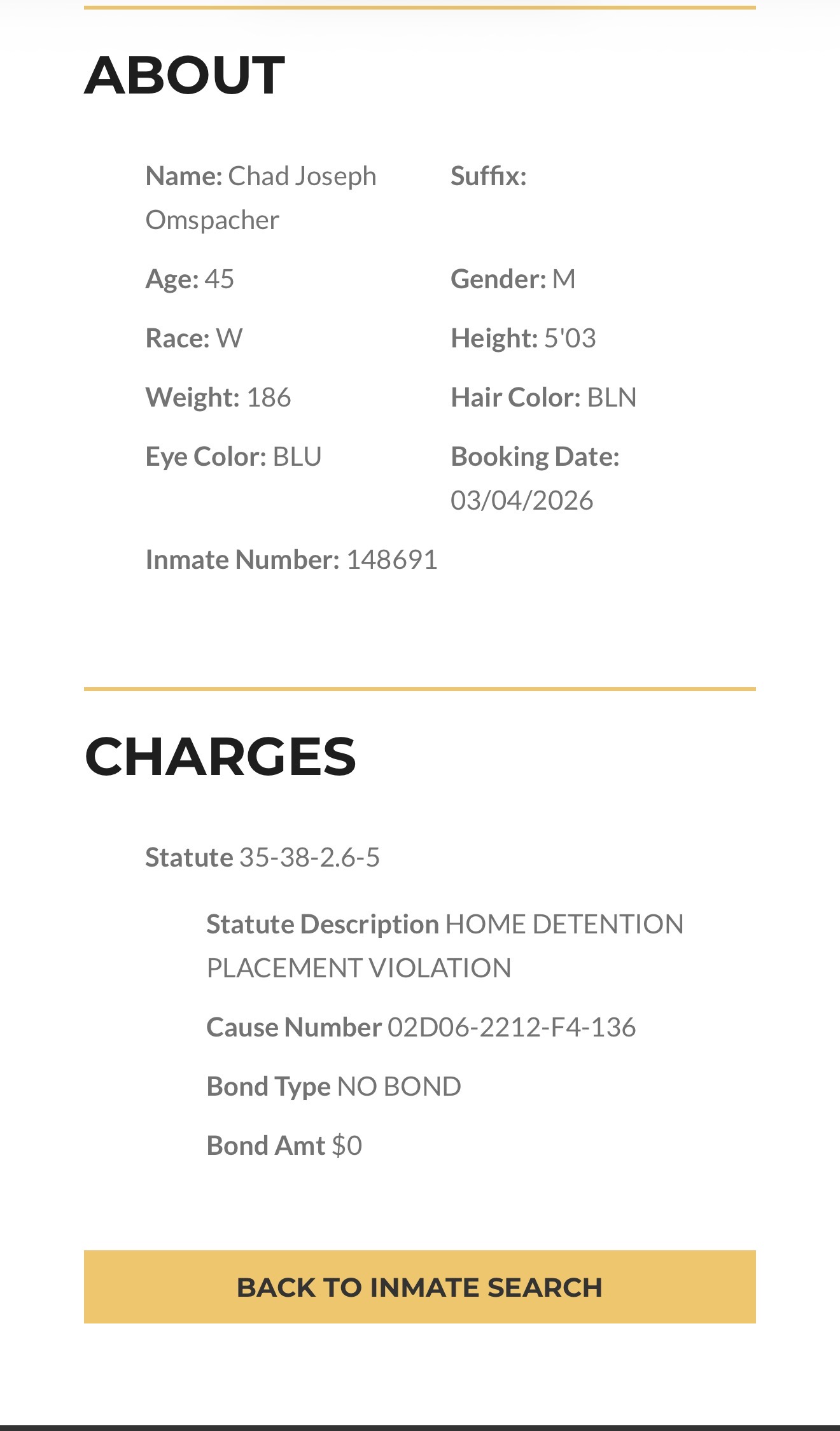 Chad Omspacher of Ft Wayne Indiana has violated probation from our case and has been arrested. He will be back in court this week.